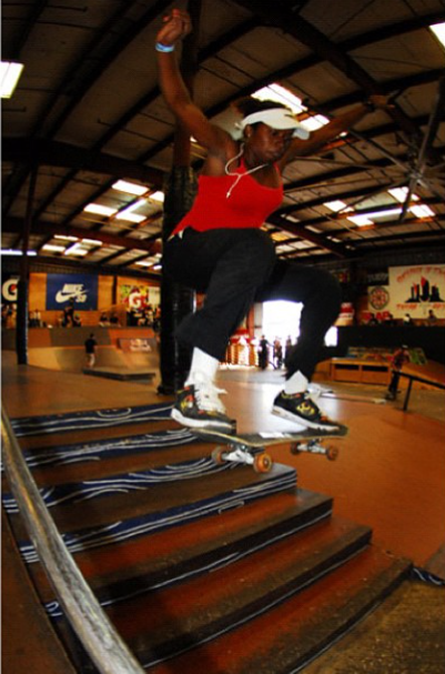 Crystal was skating strong in 2006 / 2007, and there’s some Youtube videos under “SkateboardcDOTcom,” where she provides footage of her landing and practising a kickflip 5-0 and noseblunt slides, and she offers advice on heelflips, kickflips, ollie to manuals on obstacles, and then does everything switch or nollie. There was also mention of a website… www.skatesecrets.com.