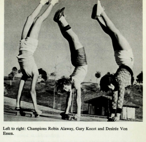 Note: the triple-hand stand photo by Jim O’Mahoney appeared in the book Skateboards and Skateboarding (1977) by LaVada Weir.