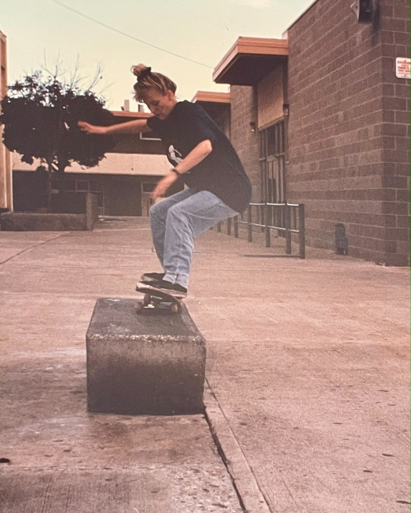 “I first started getting boards from John Lucero. I don’t think I was sponsored really but just getting flowed decks from him. It’s a funny story how I met Lucero. Around the same time when I first started skateboarding I was also on a cheerleading team. We had to go door to door and sell chocolate bars in our cheerleading uniforms. I didn’t want to walk around from door to door so I skated and ended up knocking on Lucero’s door. He asked if I was the girl always skating the dirt bank up the street and he said I was pretty good and gave me a board. I remember being so psyched to meet him and get a free board. I had skate ads of Lucero on my walls and had heard he lived in Huntington but had no idea he lived right down the street from me. I didn’t expect to knock on his door.”