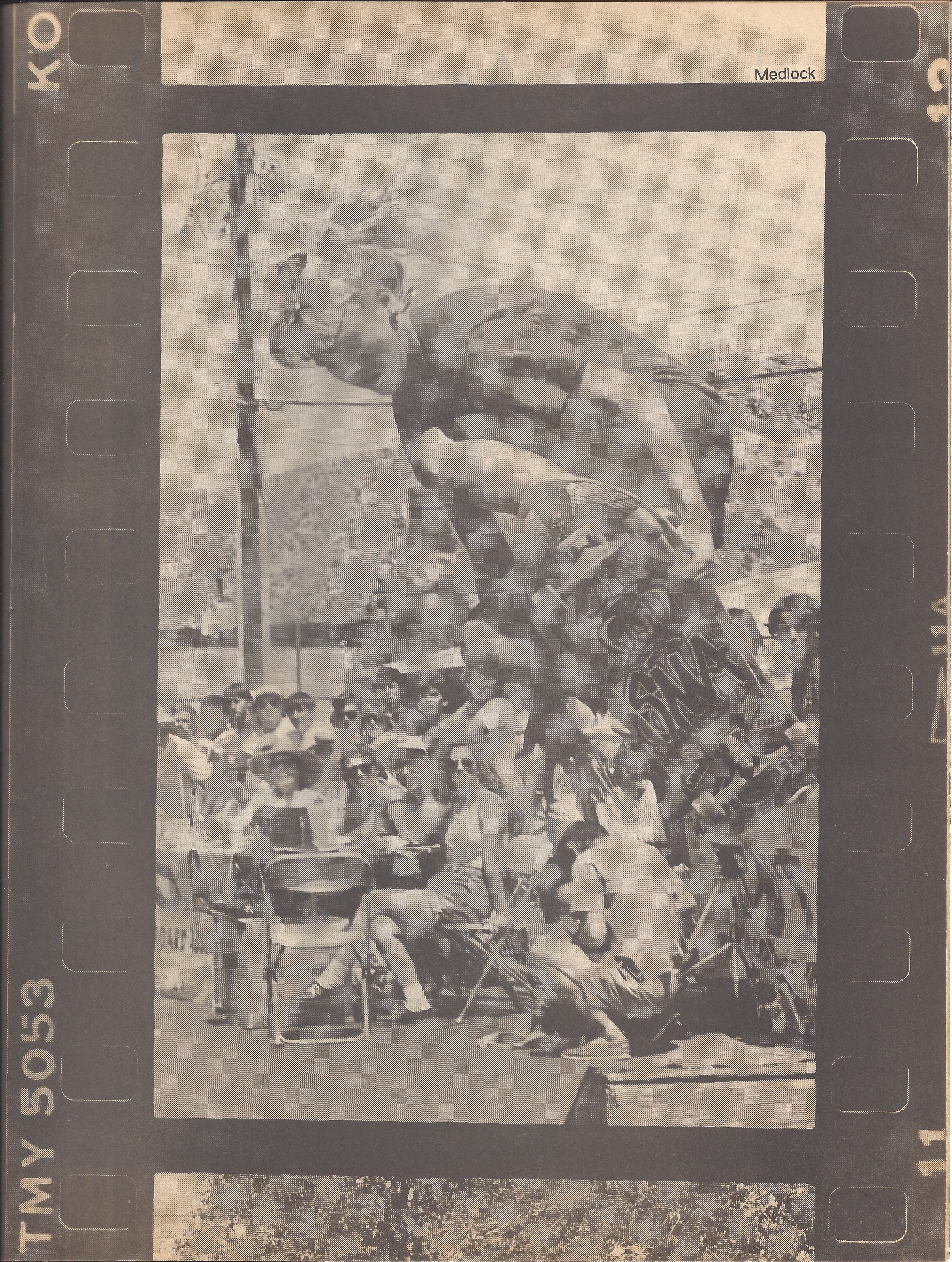 The contest at Long Beach was called the “Zimbabwe Skate Safari” on November 12-13, 1988. Saecha came second to Christy, but ahead of Germany’s amateur vert champion, Nathalie Richter visiting the U.S.