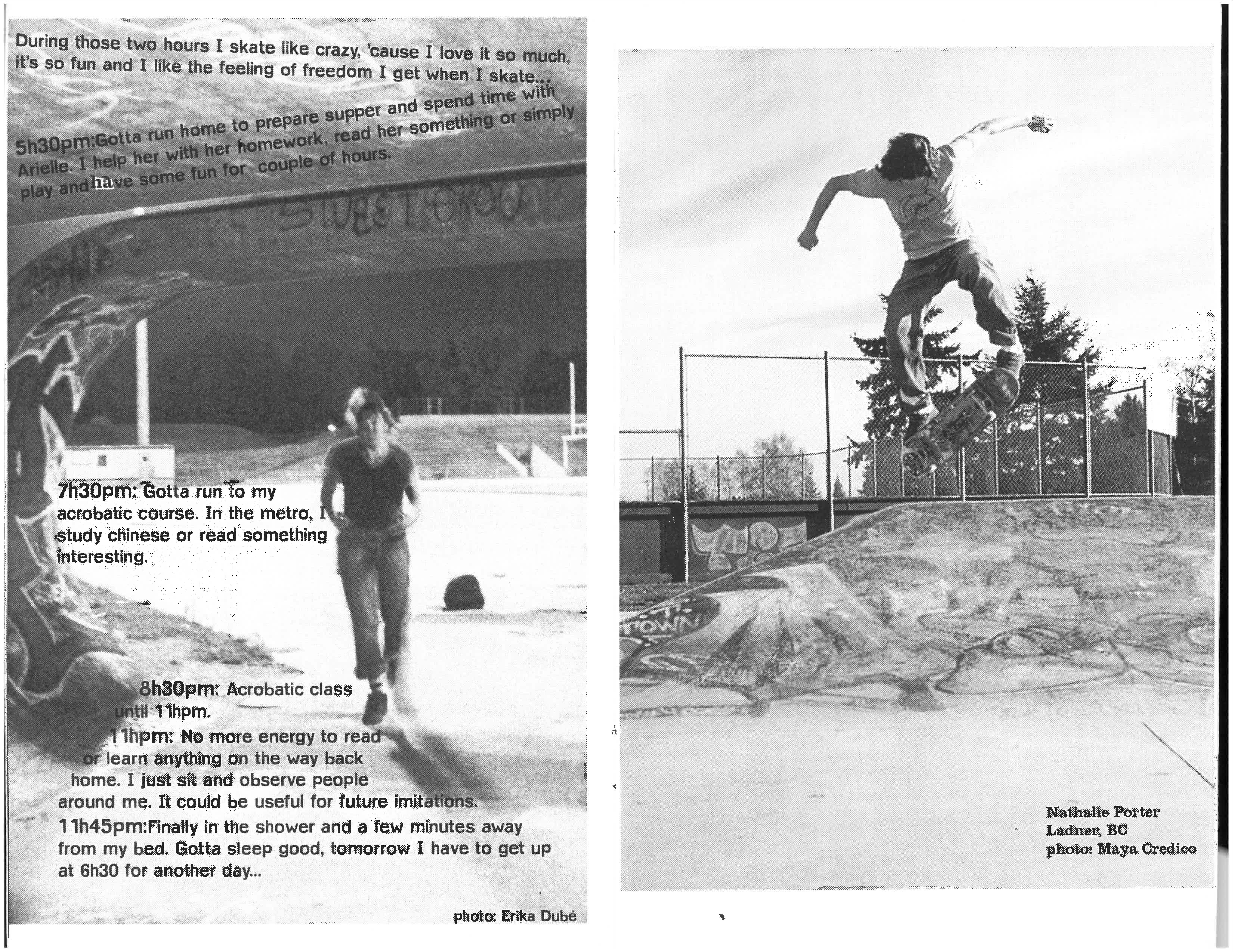 - Porter, Natalie. “Female Skateboarders and their Negotiation of Space and Identity.” Personal Interview with Marie-France Gravel, Feb. 27. 2003.