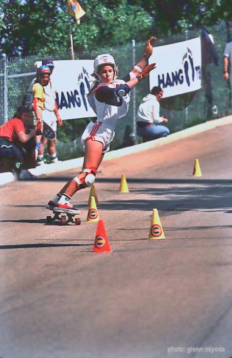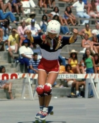 - September 1975, 1st place in the Junior Women’s Slalom and 2nd place behind Laura Thornhill in the Junior Women’s Cross Country at the Hang Ten World Pro-Am Skateboard Championships, in the L.A. Sports Arena.