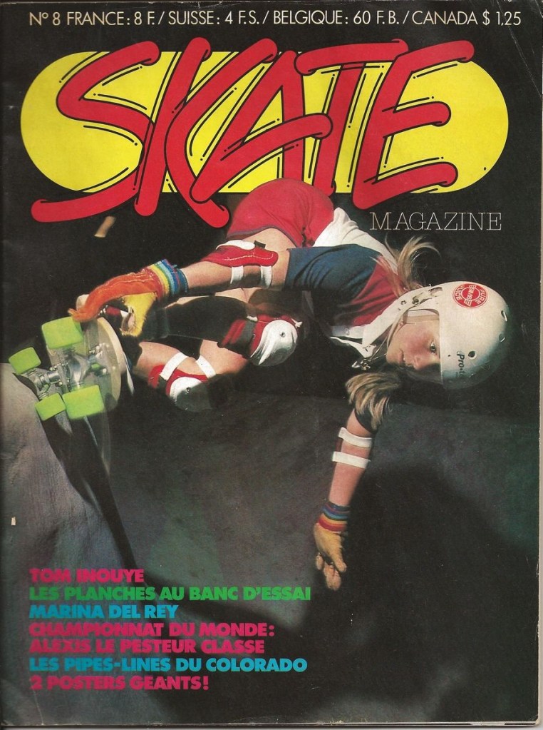 Another fun fact is that Edie graced the cover of issue No. 8 of a French magazine called Skate in 1978! It’s always a big deal when a skater takes the cover, an accomplishment that was especially challenging for women [see the website page: Magazine Covers].