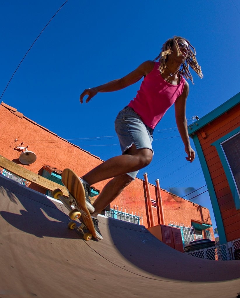 Unfortunately, the pool located in West Los Angeles was soon discovered and overrun by skaters and made unskateable by the owners. Mills continued to sneak out and skate in her teen years, returned to it in her senior year at college, and then put it aside until she started surfing and had some work done on her knee, and then it was game on!