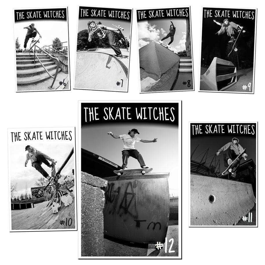 In a 2017 interview by Adam Abada for Monster Children about the origins of the zine, Ebeling explains that ten years prior her friend showed her Danny Plotnick’s cult-classic video “The Skate Witches” on YouTube. “Because of that video I ended up getting a broom and skateboard Skate Witches tattoo when I was 19. Fast forward a couple years and Tony at 35th North skate shop in Seattle offered us a spot in the All City Showdown video. Once we had our team figured out, we just needed a name. Naturally, we thought The Skate Witches would be a pretty good fit.”