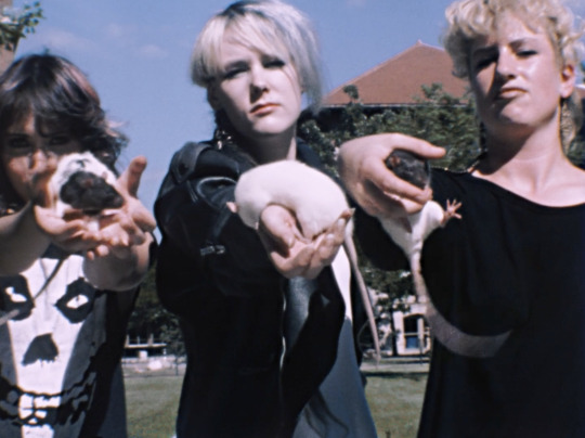 The three skate witches wear leather jackets, claim to skate at midnight, steal skateboards, terrorize the guys, and require a pet rat to be part of their crew, all to the classic soundtrack of “Skate and Destroy” by The Faction, which included the legendary Steve Caballero.