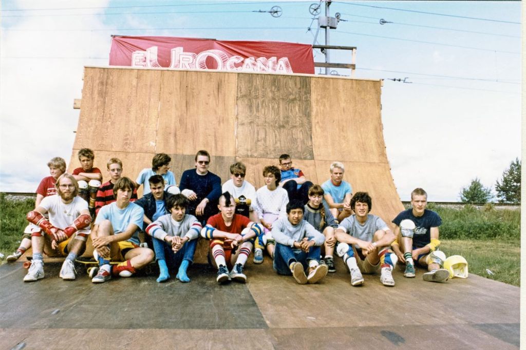 Photo: Eurocana Summer Camp in Sweden, 1982. Corina has a braid and is seated between Steve Caballero and Mike McGill.