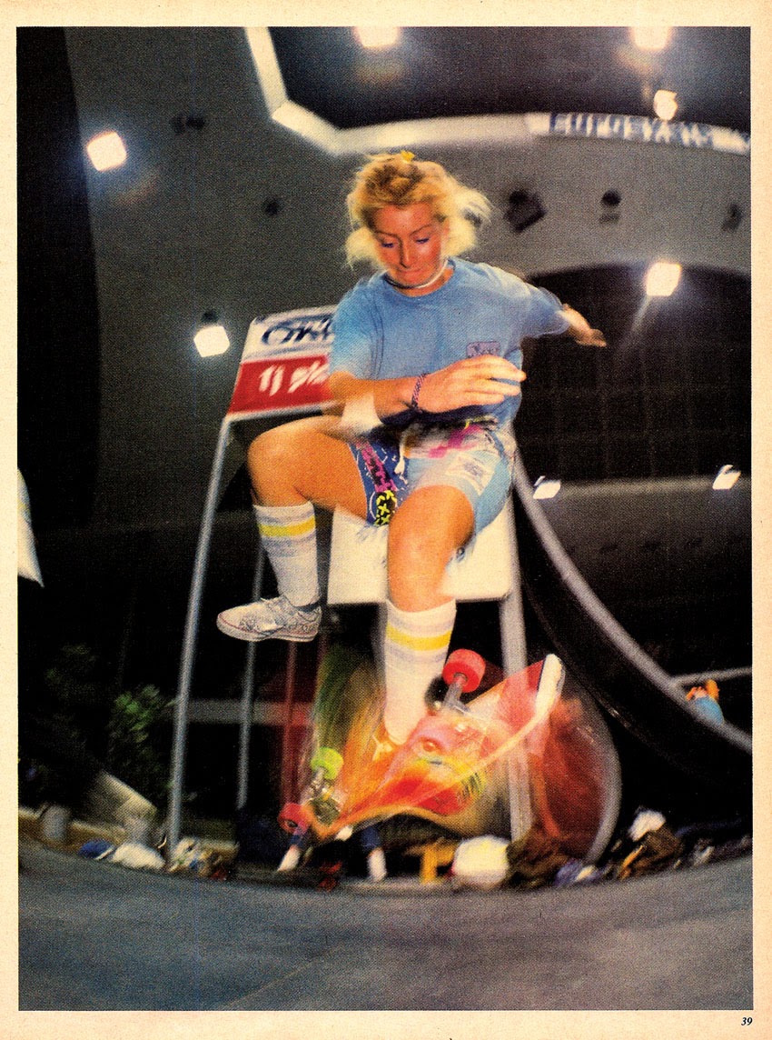Footage of Corina’s performance is found within the Transworld video called “Radical Moves” (1986, dir. Larry Dean). The awkward and toxic commentary by Kim Blackett, with degrading banter directed towards the female participants, was sadly a reflection of the times that persisted.