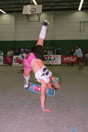 Some rare footage of Corina was found from Skateboard World Cup in July 1988, in Munster, Germany competing in amateur freestyle along with the guys!
