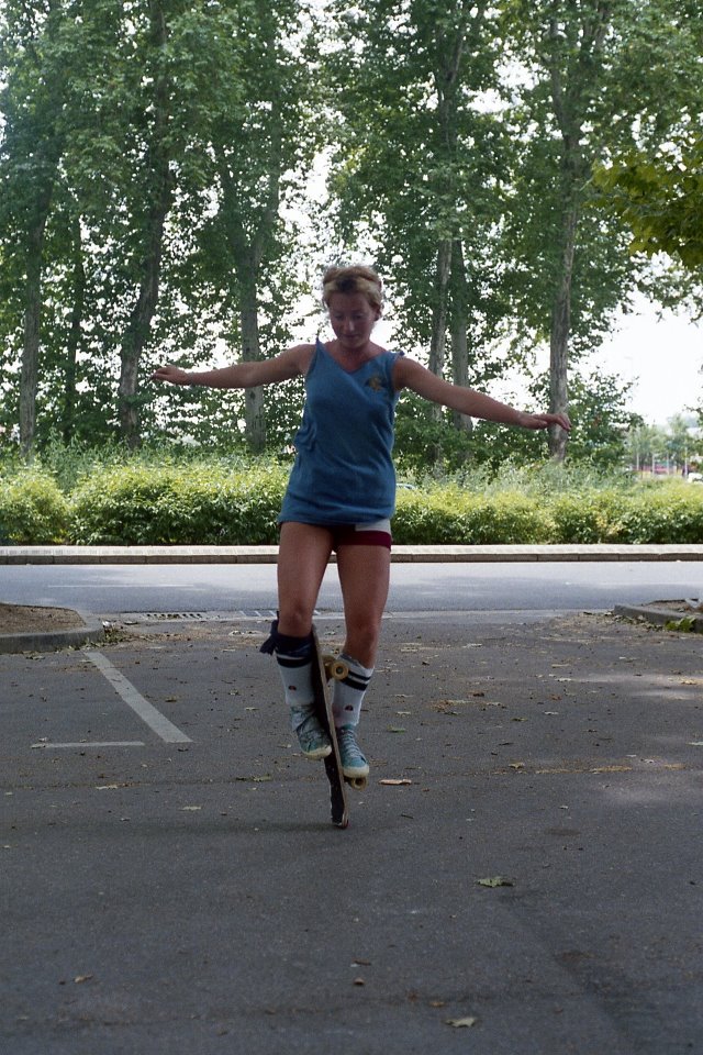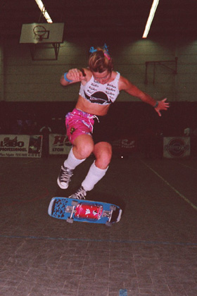 A few years later, in Prague, Czech Republic, Corina placed 17th out of 30 guys in the 1988 Euroskate competition. When asked about her feelings as the only female to enter the contest, Corina replied, “I’ve just seen the points now and I’m wondering how they gave them. It’s really hard to tell. There are some people in front or behind who shouldn’t be there. It’s quite strange. Still, it was a fun contest. Everyone skated well. Personally, I skated well, so I’m happy.” Her response suggests that the judging was suspect at best.