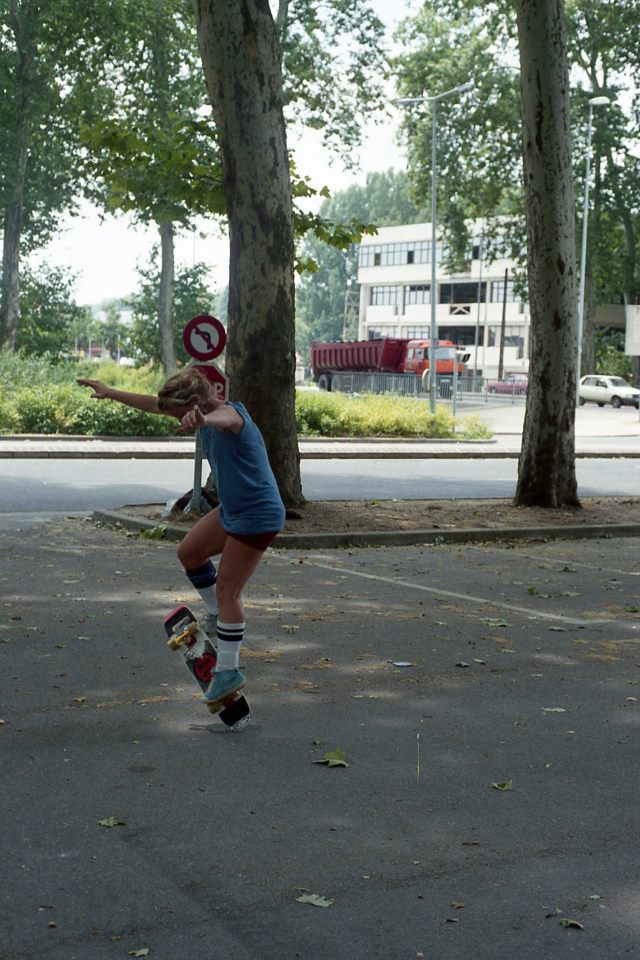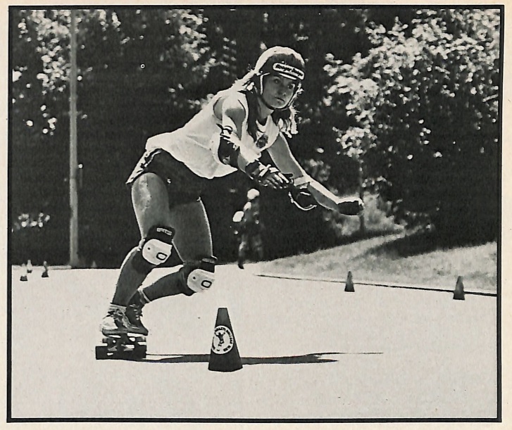 In a report on the skate scene in Europe, a photo of Corina practising slalom in Lake Geneva appears in the November 1979 issue of Skateboarder, as Spreiter was part of the Swiss Landsurfer’s Club.