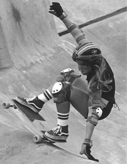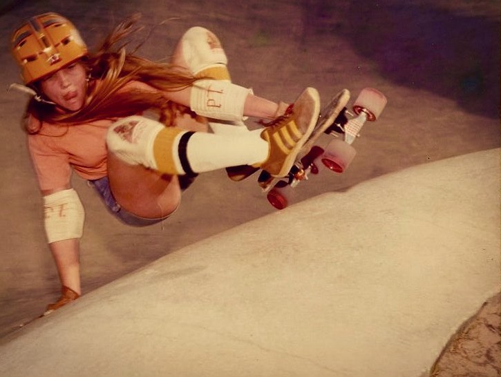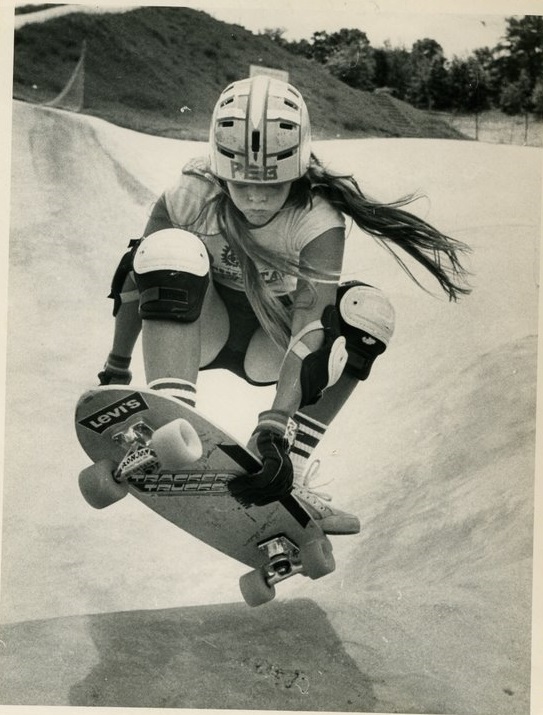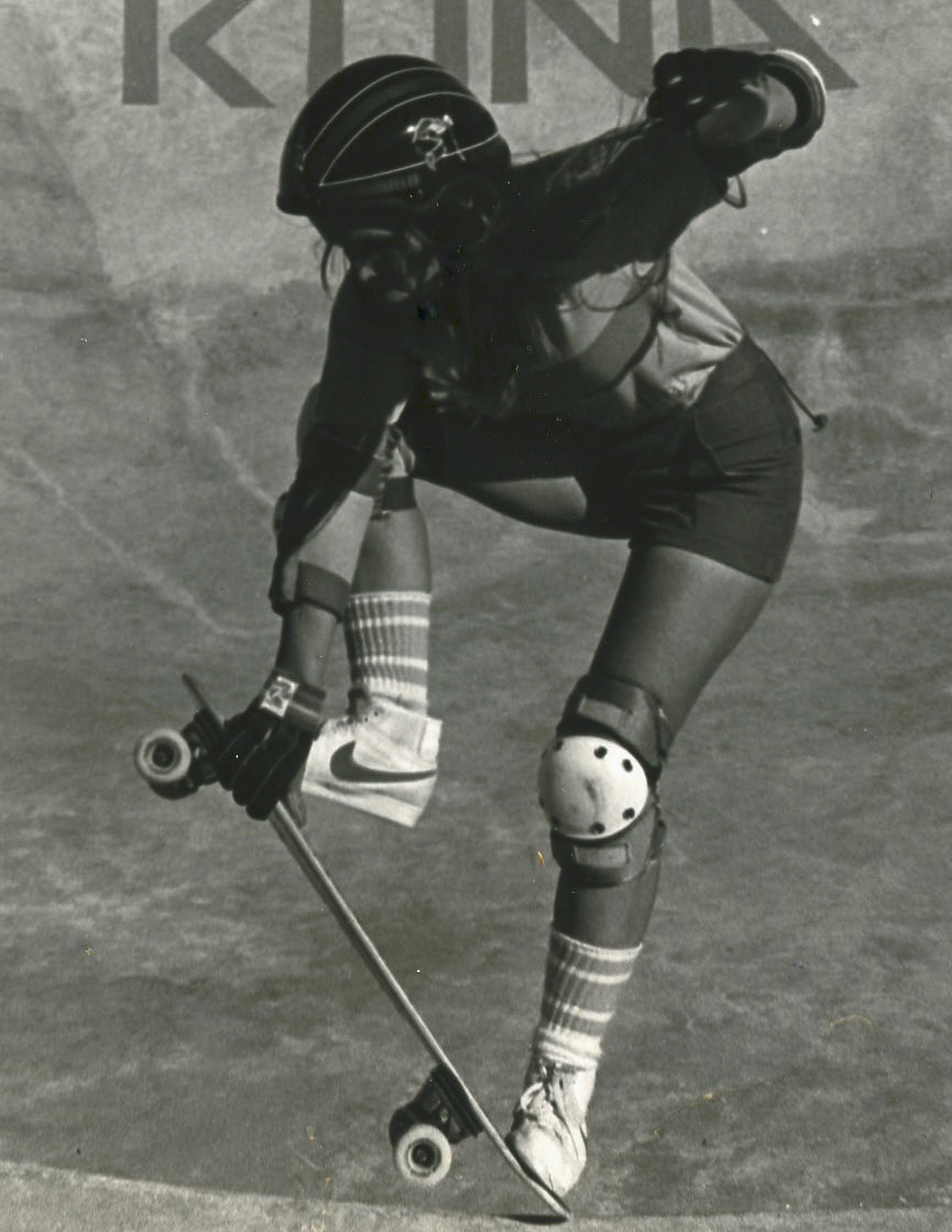 In The Florida Times (May 9, 1980), Peggy Turner shared that she had begun skateboarding at age 14 for fun. “It was a fad everybody seemed to be doing… Then I really started enjoying it and then I got good. Now I want to skate for a long time.” Peggy’s home skatepark was the legendary Kona in Jacksonville. She began skating Kona the moment it first opened in 1977 which resulted in her receiving the nickname, “The Queen of Kona.” Peggy was also described as “Florida’s Z-Girl.”