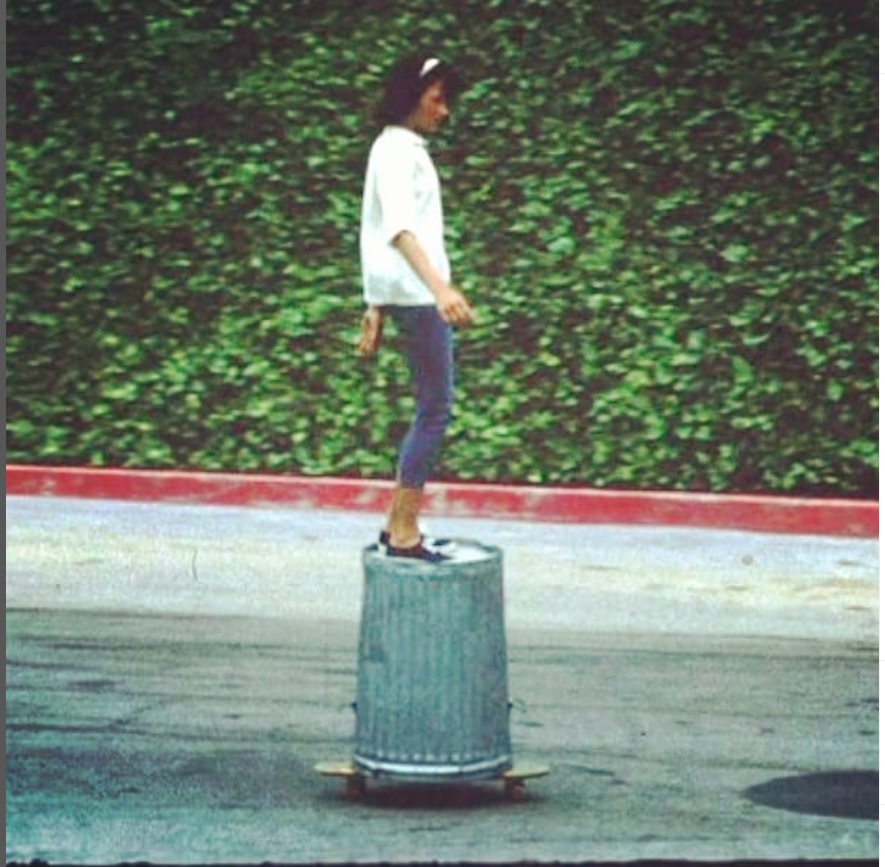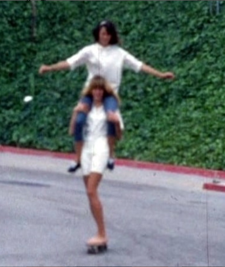 The girls had a blast, and there’s even a photo of Suzie performing a balancing act on a trash can, while skating around the Palisades High School, circa 1966.