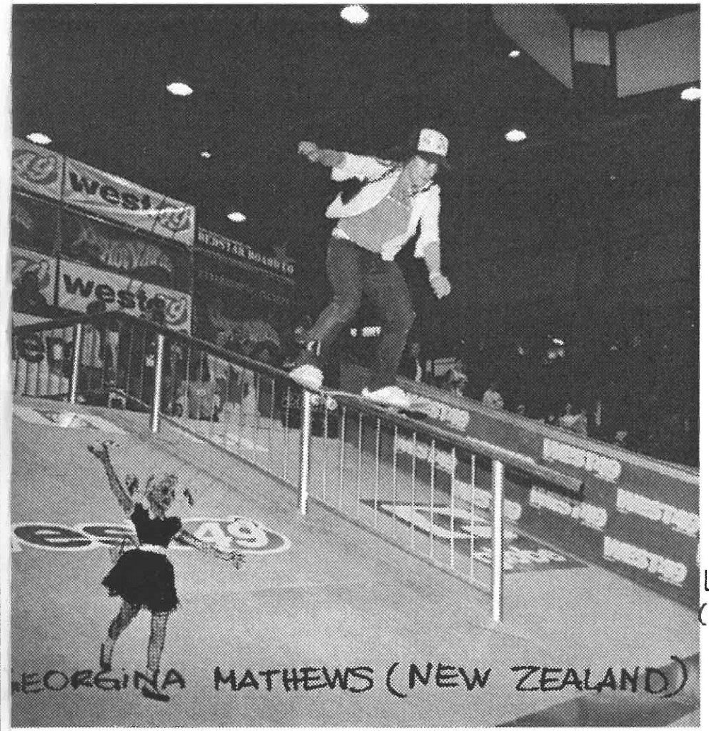 In June 2000, the NZ Herald reported that, “Her parents, Ally and Janice, were so impressed by Georgina’s talents that two weeks ago they flew her to the Australian Girls’ Street Skate Jam in Melbourne to meet her idol, United States professional Jaime Reyes. Georgina fought her way to second place in the overall competition and won the best single trick title… But the highlight of the trip was sharing the limelight with Reyes, including interviews with Australia’s Extreme TV crew, and picking up a sponsorship deal with Gallaz.“