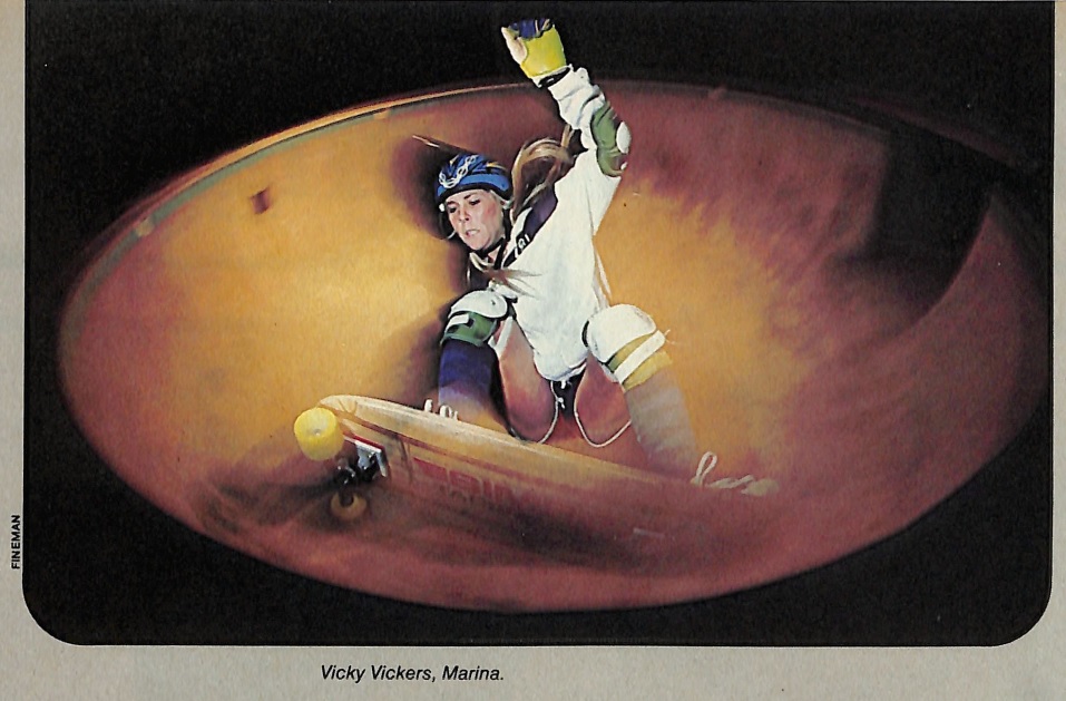 Vickers was originally from Pensacola, Florida but over the years moved between Texas and then eventually to Los Angeles. With inspiration from like the likes of Laura Thornhill and Ellen Oneal in the magazines, Vicki made progress skating Freestyle, but admitted she preferred riding reservoirs since it was the most fun (Goodrich 1979).