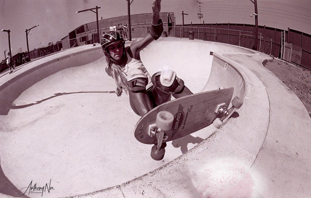 When Vicki moved to Los Angeles she found sponsorship with Pepsi, Kryptonics, and briefly with Alva. Vicki even rode the Pepsi plexi-glass halfpipe during the Rose Bowl Parade in 1979 which was covered in decorations for the occasion. Pepsi also took her on tour to Mexico, where she made a great impression and inspired local skater Stephanie Fernandez!