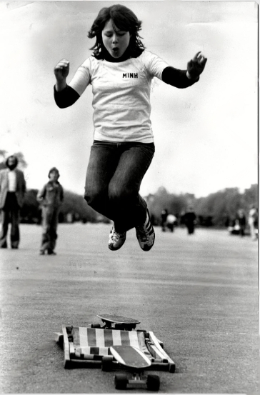 Minh explained that, “I got started when I made my first board out of roller skates. Now I’ve got a good board, and I’ve been on TV for Magpie at Brands Hatch.” [Note: Magpie was a British TV show for children, and Brands Hatch was a motor racing circuit, although perhaps there was skateboarding nearby?].