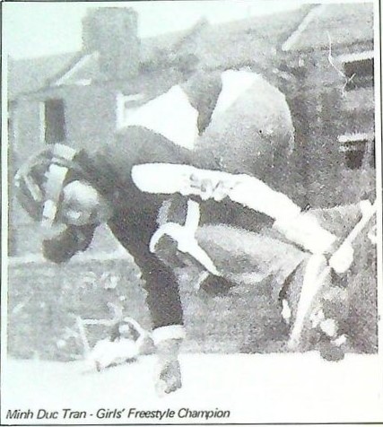 The following year, in 1978, Minh was celebrated in another UK magazine called Skateboard Scene within Issue No. 7. Minh was interviewed for the “Kate the Skate” feature (a ground-breaking column by Kate Mahony!) where it was shared that she won the Girls’ Freestyle Trophy at the “Skateboard 78” competition and even quit school to concentrate on skateboarding full time! She joined the Blue Tile team as their resident pro for sales promotion and planned on entering more contests.