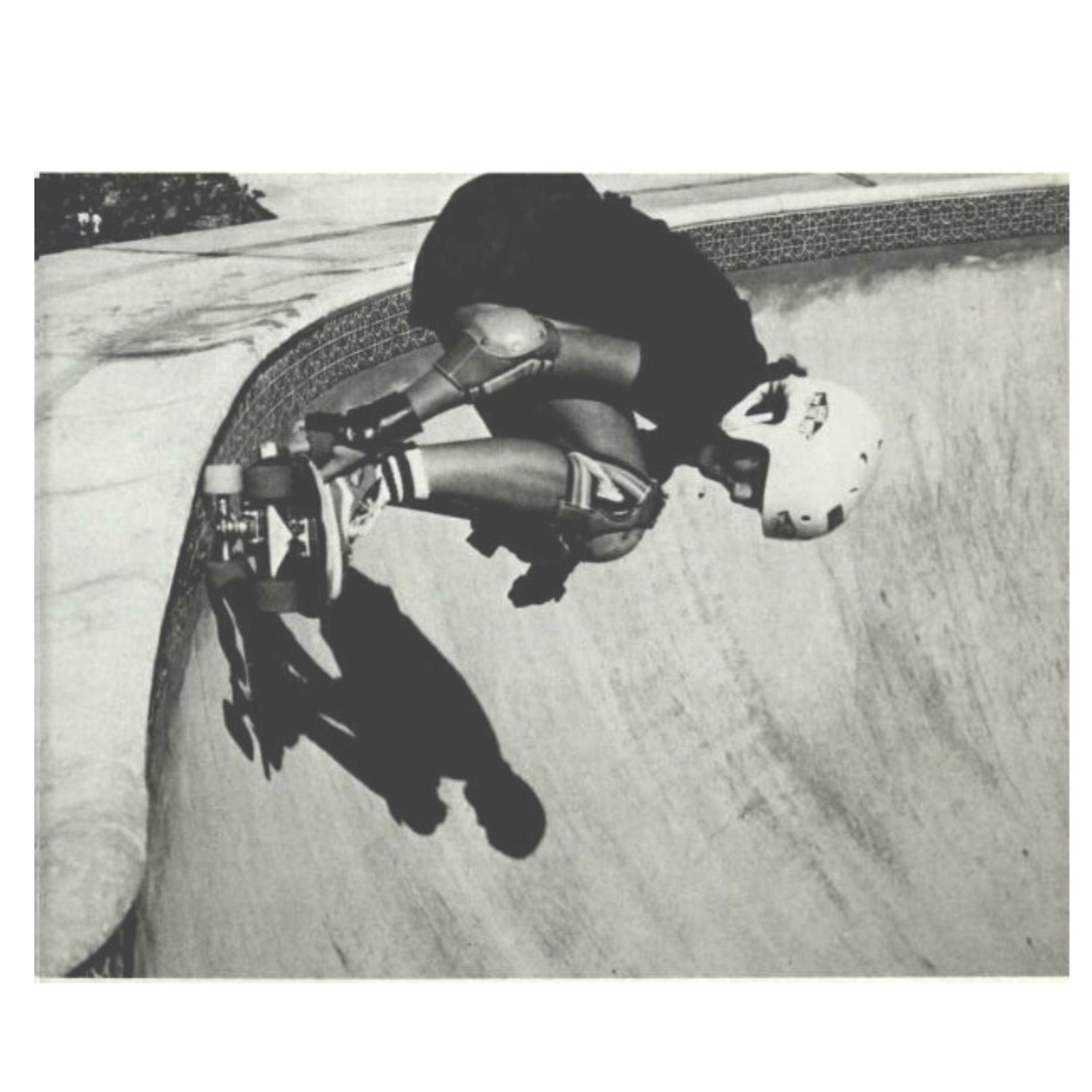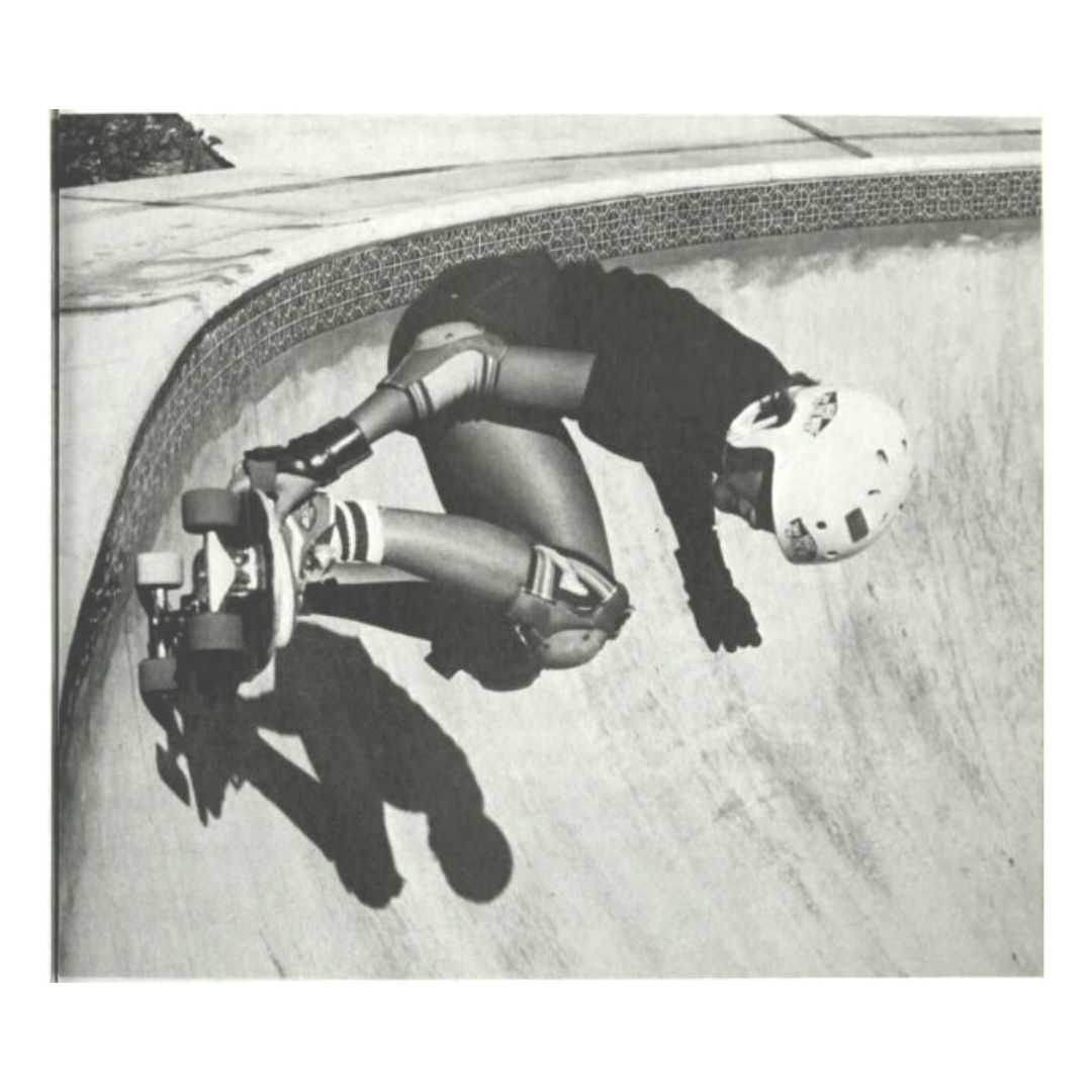 Photos of Yvonne skateboarding in the ‘Super Bowl’ were taken by photographer Al Moote for the 1979 manual Advanced Skateboarding by LaVada Weir. Yvonne had met the author at the Torrance skatepark, as she lived in Rollings Hills, the next city over. While learning a new trick, before taking it to a bank or bowl, Yvonne was quoted in LaVada’s book saying that she would practise in her driveway at home. “It takes a lot of practice—every day… if you want to be good.”