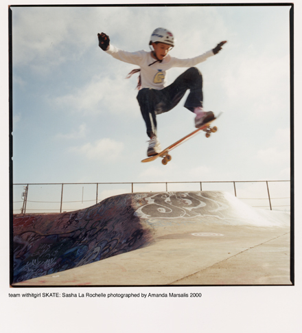 Sasha interviewed several ripping skateboarders of her era, including Heidi Fitzgerald (2007) and Kim Petersen (2003) for “Gurlz on Boardz” and reported on the women’s events at contests like the Strawberry Bowl Jam in 2003 and Slam City Jam 2004.