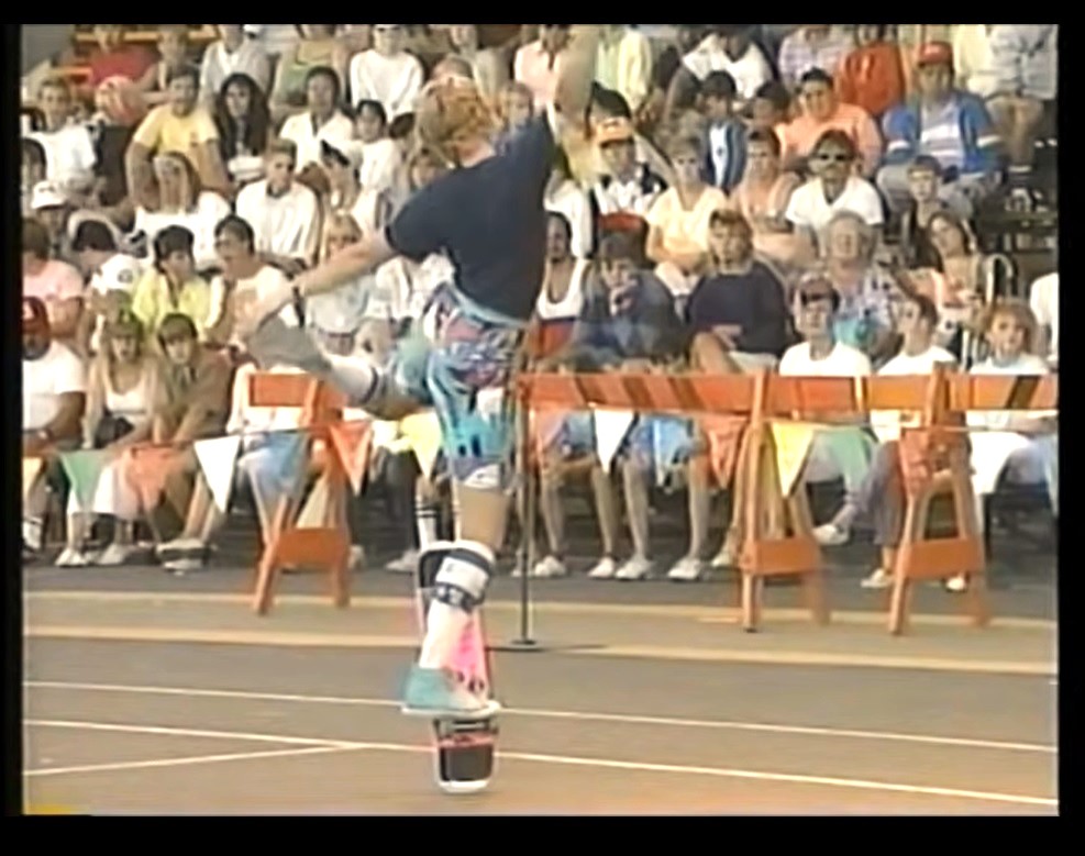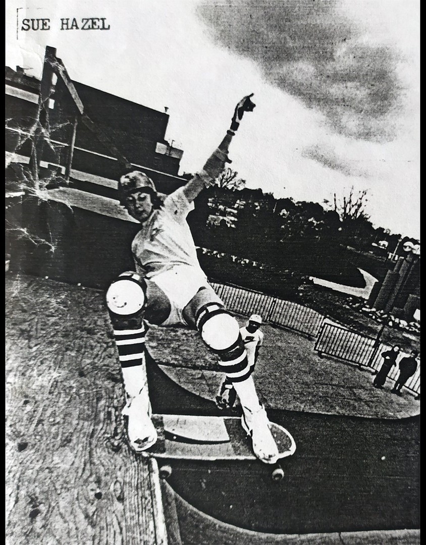 Footage below is from a UK TV show called Motormouth out of Kent. Sue can be seen performing freestyle moves and offering her opinion of a gimmicky skateboard design: