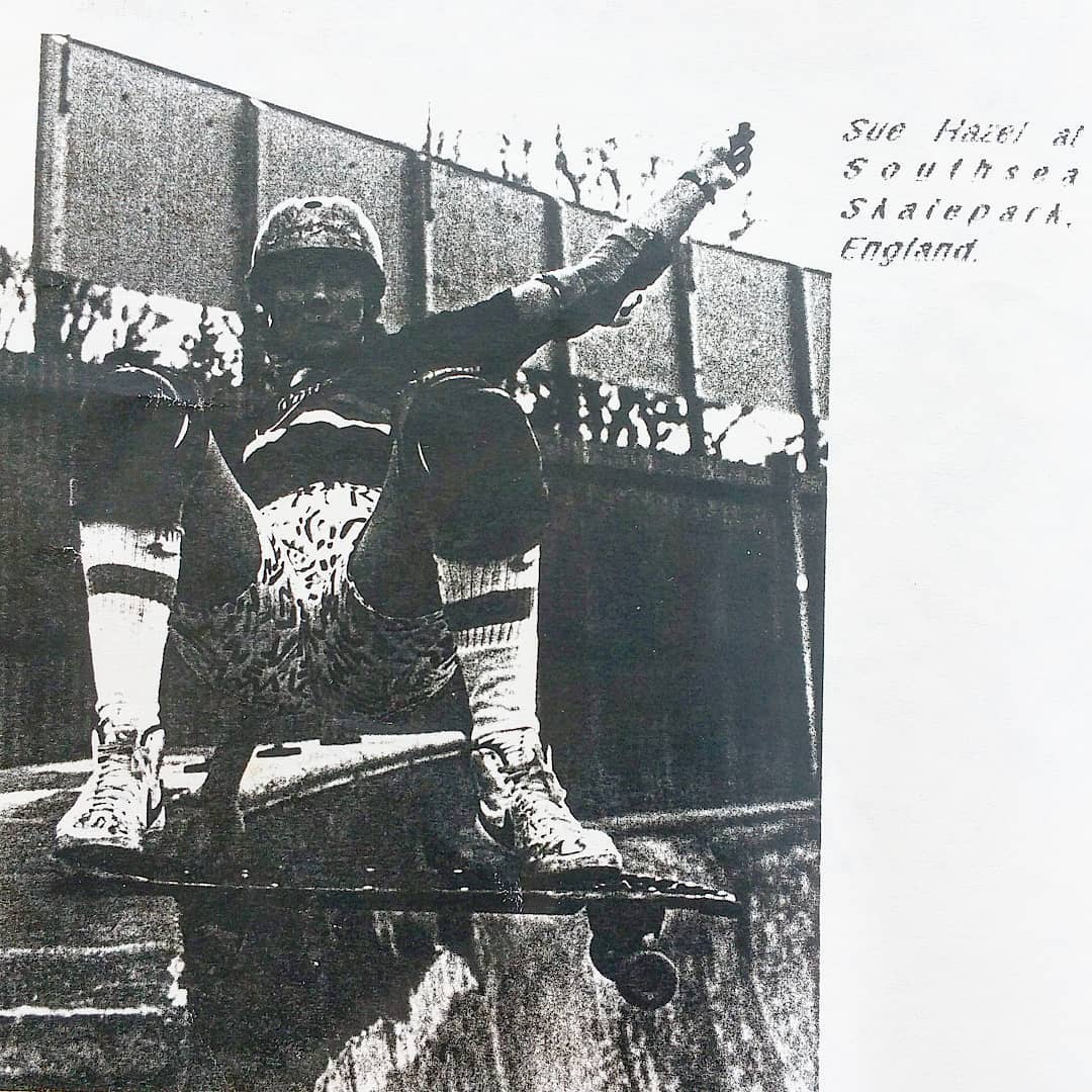 In 1986, when Sue was 25 there was a brief introduction on her in a magazine and the following year at age 26 she received a tiny feature in the UK Sk8Action magazine. Sue described her worst nightmare as being injured and not being able to skate for a long time. She hoped to travel to places like Brazil, or even Texas as long as it was somewhere different. And, Sue encouraged girl skaters to “hang in there, have fun and ignore rude comments.”