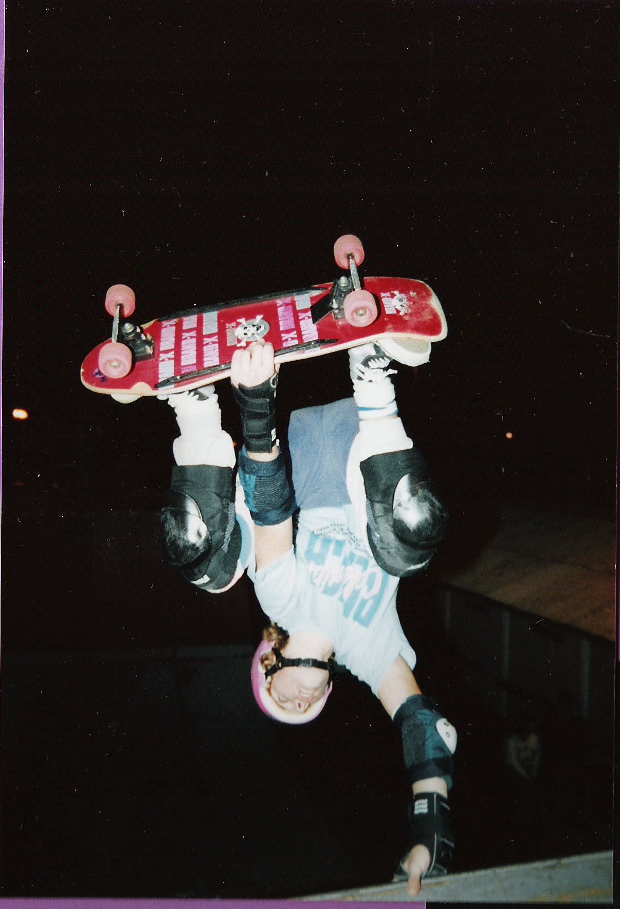 And, you’ll find footage of Sue scattered throughout this video from the Southsea Shut Up and skate contest, also from 1991 wearing turquoise shorts and a pink helmet.