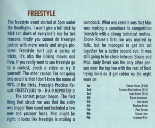 Sue’s practise paid off! In 1986, the ESA “through the organisational genius of Derry Thompson, managed to obtain funding by the Sports Council to take a team from England to compete in the Transworld Skateboarding Competition in Canada. It was a real attempt to legitimise Skateboarding in the eyes of the governing body of sport and was a tremendous opportunity to attend a major event that we would otherwise have never managed to be able to fund by our own means” (Cauble).