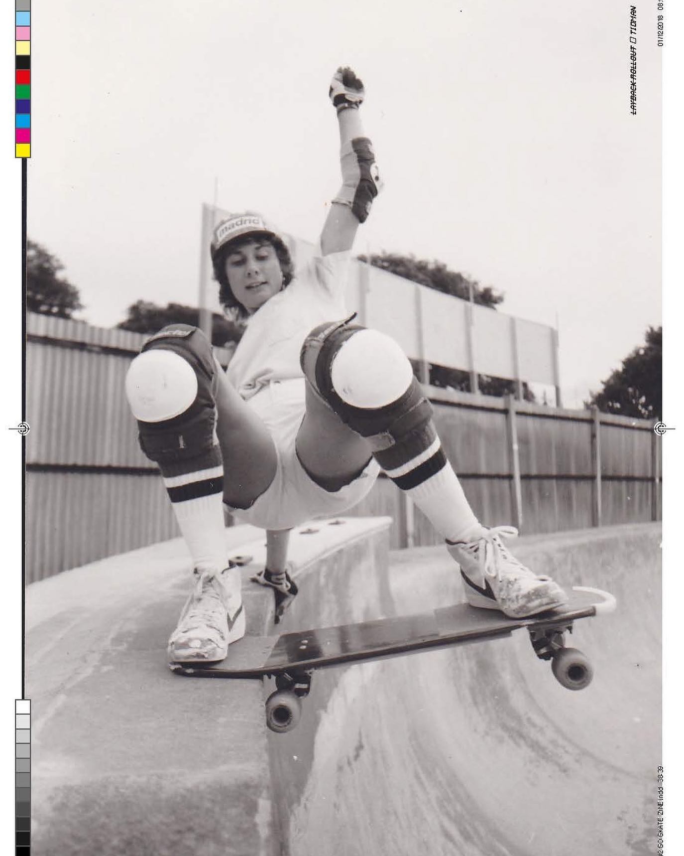 By the 1980s, Sue started competing in freestyle and ramp. “The English Skateboard Association [ESA] Comps at this time though were mostly about fun, so a lot of people did all the disciplines for a laugh. It was the era that most of the public thought that skateboarding was dead” (Cauble).