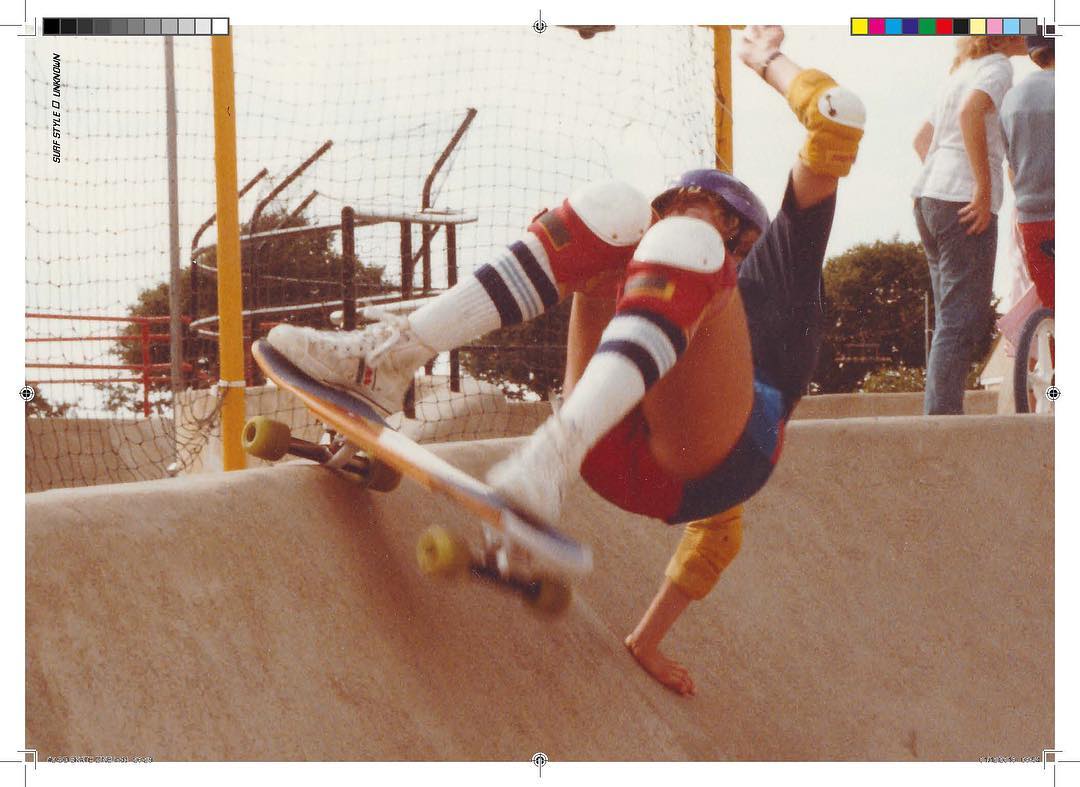 Photos above: Sue was included in Equal Time zine, the handplant photo was taken by Stephanie Person in 1987, and there were two photos of Sue within a UK book called Skateboard Action (1987) by Tim Leighton Boyce.