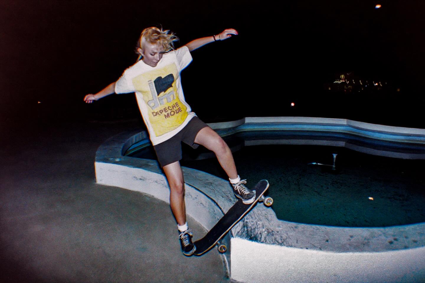 Edwin also reminded Christy of a place called the Burger Banks that was another popular destination. There were the occasional incidents of security guards asking them to leave a spot, but no confrontations, and the skaters were content to cruise around the streets and find unusual features. Christy briefly dabbled in skating mini-ramp since there was a local named Scott who had a backyard ramp, known as “Scooter’s Ramp,” but she always preferred street skating.