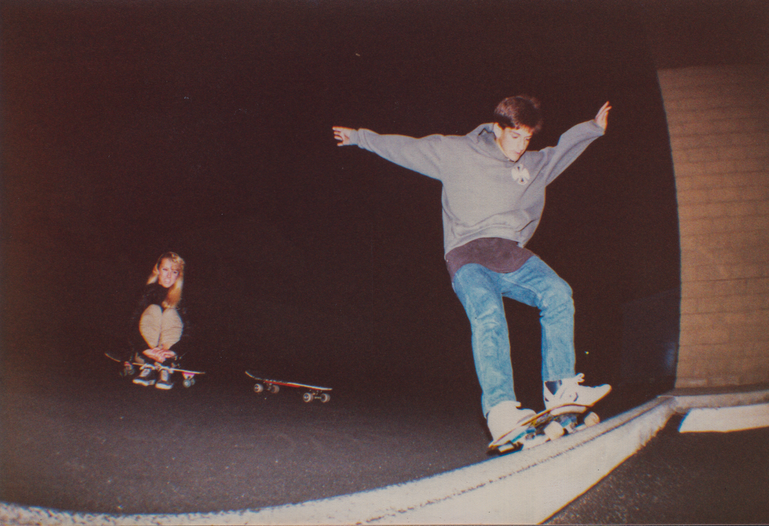 Christy’s memories of skating with her crew like Edwin, Adrian Demain, and Terrence Yoshizawa were very positive, and on occasion another female skateboarding friend joined them in 1990 / 1991 named Amy Green. Christy’s favourite spot to skate was Hell Curb at Harbor blvd & Baker street, which was a long curb with an arc and slope. Christy noted that it was a “super fun curb by Dunkin Donuts. I feel like Saecha and I ate a lot of donuts in the 80’s” thanks to that curb!”