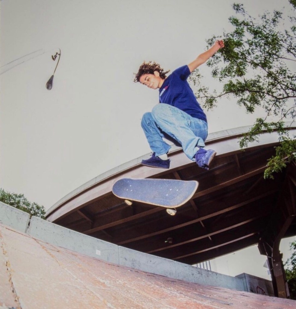 When she bought her board, the skateshop owners shared how there was a roller rink in town called Kendall Park that would have a skateboarding night on Wednesdays. Lauren said, “they would set-up ramps, and it was kind of like a skate jam… there would be punk bands playing. It was sick!” (Ramirez). Footage from March 1989 was shared on the ABF Skateshop Youtube page featuring a demo with the likes of Mike Vallely, and the place was packed with skate rats! With punk music blaring, Lauren would scoot around the perimeter, just mesmerized by the scene, and everyone was cool, giving her space and letting her take a turn on the kicker.