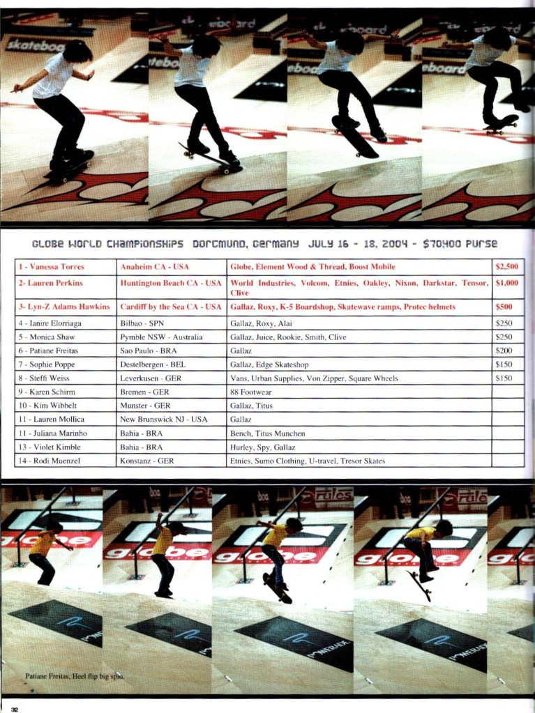 And then, for the Münster Championship Karen placed 3rd in October 2004 at the 4th Girls Skate Jam behind Sophie Poppe and Kim Wibbelt, and ahead of Julia Brückler and Candy Jacobs.