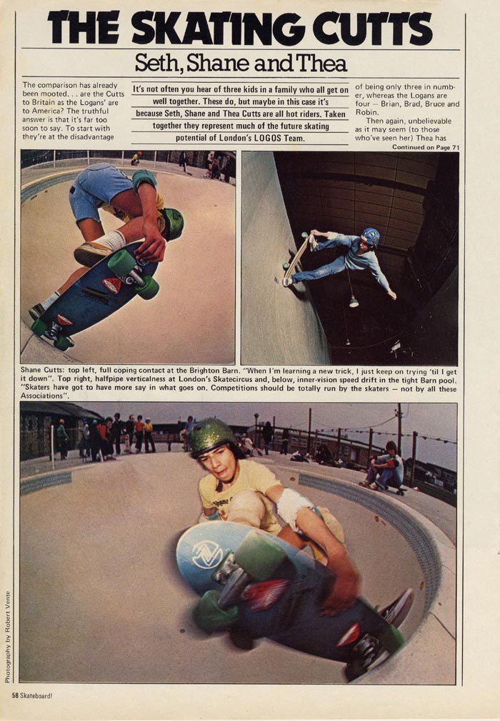 - Vente, Robert. “The Skating Cutts: Seth, Shane and Thea.” Skateboard! (Issue 11). July 1978, p. 58-59, 71.