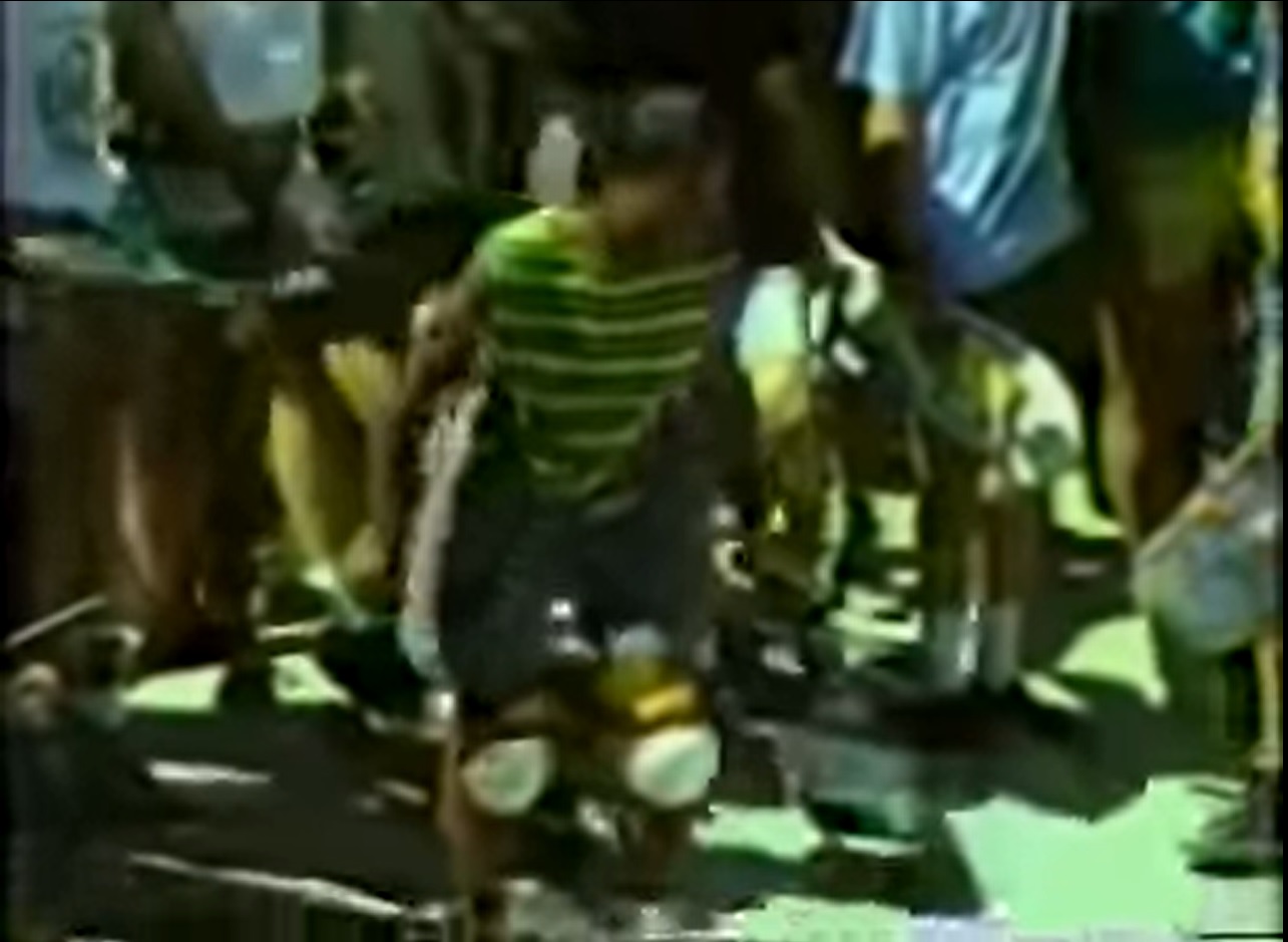 Peralta then filmed Stephanie at Derby Park, and included her footage within the classic Bones Brigade video Future Primitive (1985) at 44:57 in a striped t-shirt. Even within the mob scene Stephanie doesn’t hesitate and throws down a sweet boneless: