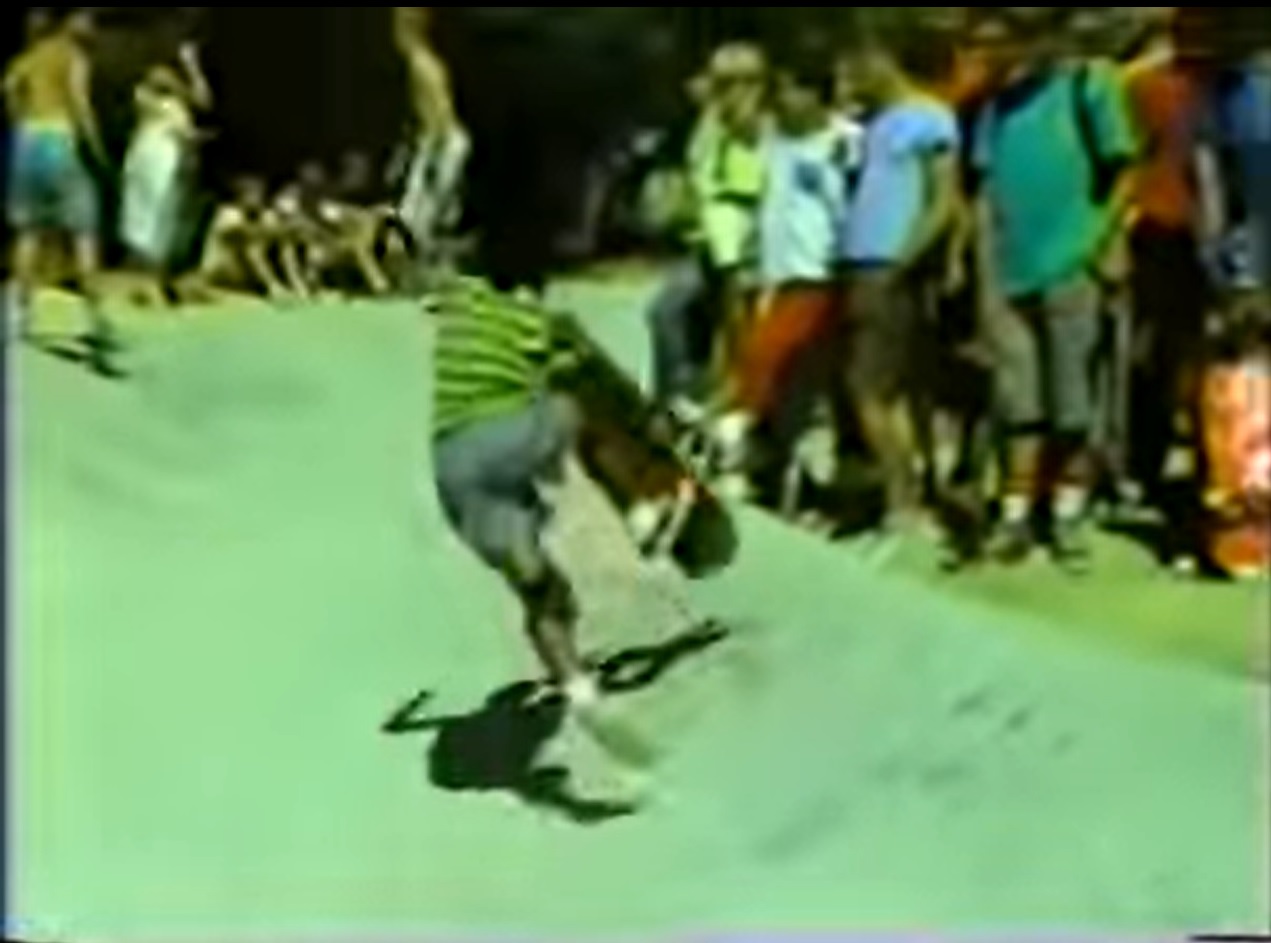 The commentary in Radical Moves towards the female participants was brutal, and a great example of the toxic attitude towards women in the 1980s, regarding them more as a punchline in a joke than valid competitors. The women’s results were even excluded from the Team points award, as Expo ’86 was supposed to represent an Olympics type format, with skaters competing for their country (Lucero). At least there was positive camaraderie among the skateboarders.