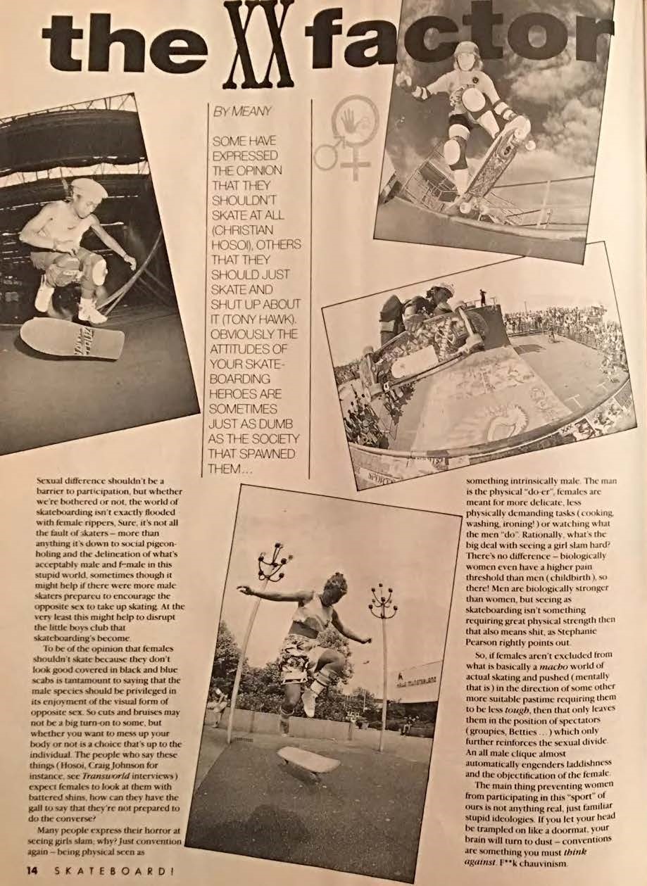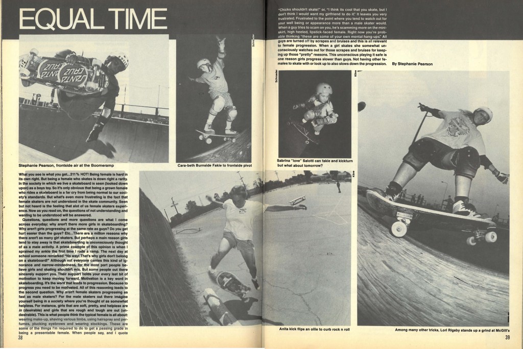 The essay is absolutely timeless! Stephanie nails it when she talks about the relentless questions that women skaters face, always expected to explain themselves and the classic “why are there not more?” question and the accusations we face if we happen to get injured, as though that justifies why girls shouldn’t skate. It’s infuriating, and I can only imagine how stoked female readers were when this article came out.