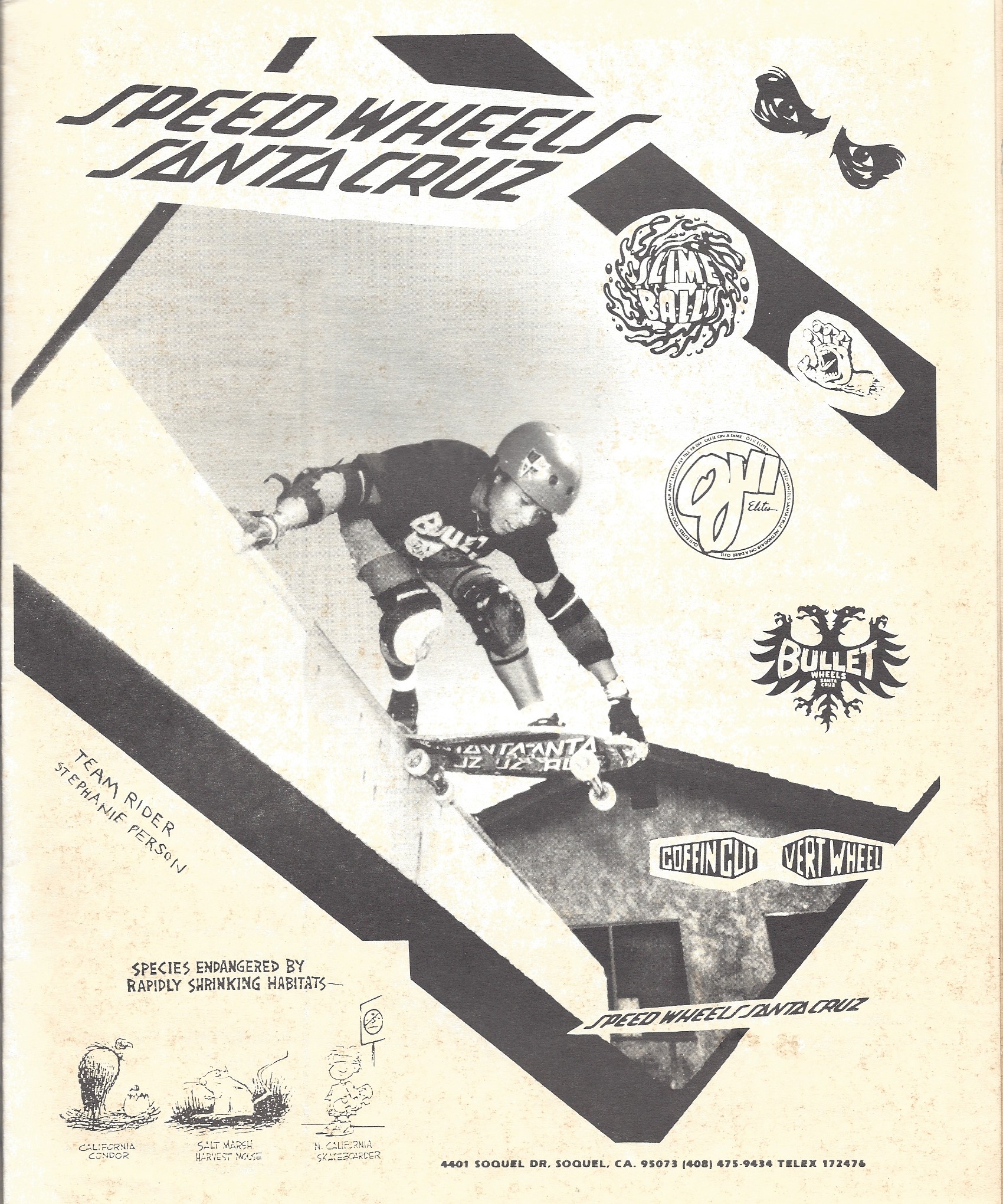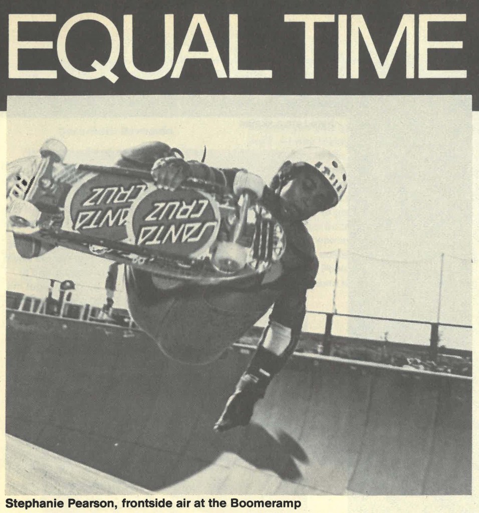 In Poweredge magazine, Stephanie expanded on the challenges of being a female skater in the 1980s, and wrote an article called “Equal Time” for their March 1989 issue. “Being female is hard in its own right. But being a female who skates is down right a rarity. In the society in which we live a skateboard is seen (looked down upon) as a boys toy. So it’s only obvious that being a grown female who rides a skateboard is a far cry from being normal to our society’s standards. But what’s even more frustrating is the fact that female skaters are not understood in the skate community. Seen but not heard is the feeling that a lot of us female skaters experience” (Person).