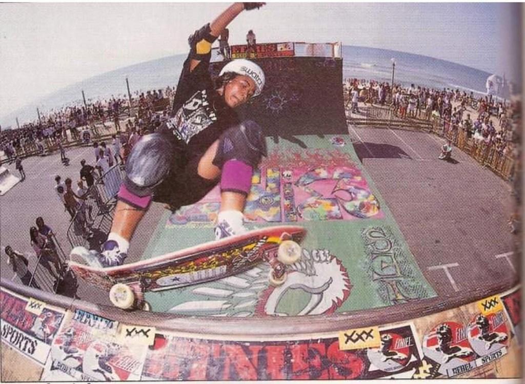 Stephanie soon began traveling, although on her first trip to Europe she had her skateboard stolen moments before she was to compete in vert at Munster, Germany. She was forced to borrow an unfamiliar board with loose trucks and injured herself. There’s a video from Stephanie’s Keto webpage of her from 1987 that explains the situation: