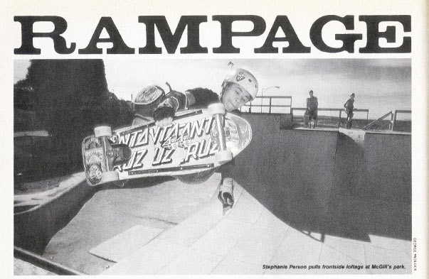 - Shaw, Bamber. “Stephanie Person.” Skateboard! magazine. November 1989, pp. 16–19.
