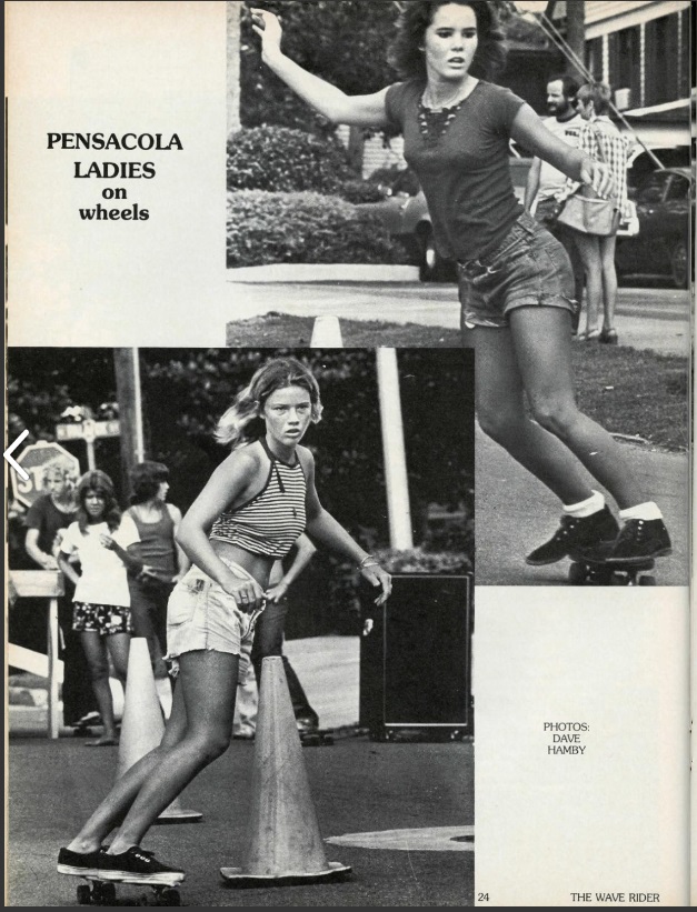 The local newspaper, The Pensacola News Journal (June 6, 1976) reported on a highly anticipated skateboard contest sponsored by the paper and the First Baptist Church. Lisa at age 21 was the women’s slalom champion with Tina Wood in second. It was noted that Lisa “has been racking up national sidewalk surfing championships.”