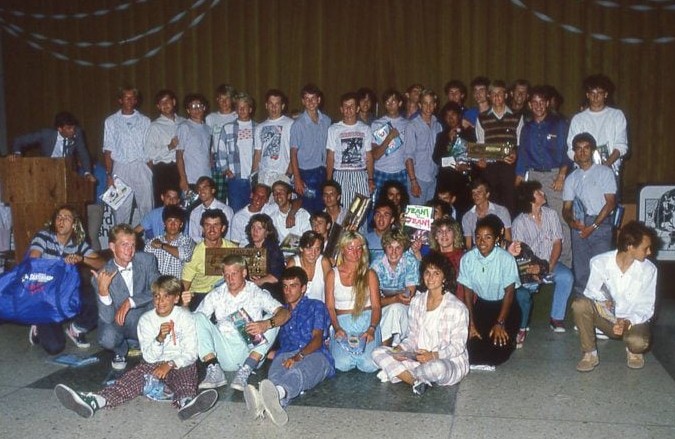 There’s also a photo of Diane, seated front right with the crew of female competitors from Expo ’86 including April Hoffman, Corina “Go Go” Spreiter, Sue Hazel, and Stephanie Person (below), which makes sense since they girls reportedly stuck together during the event: