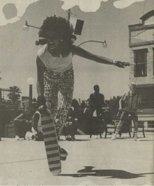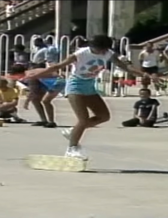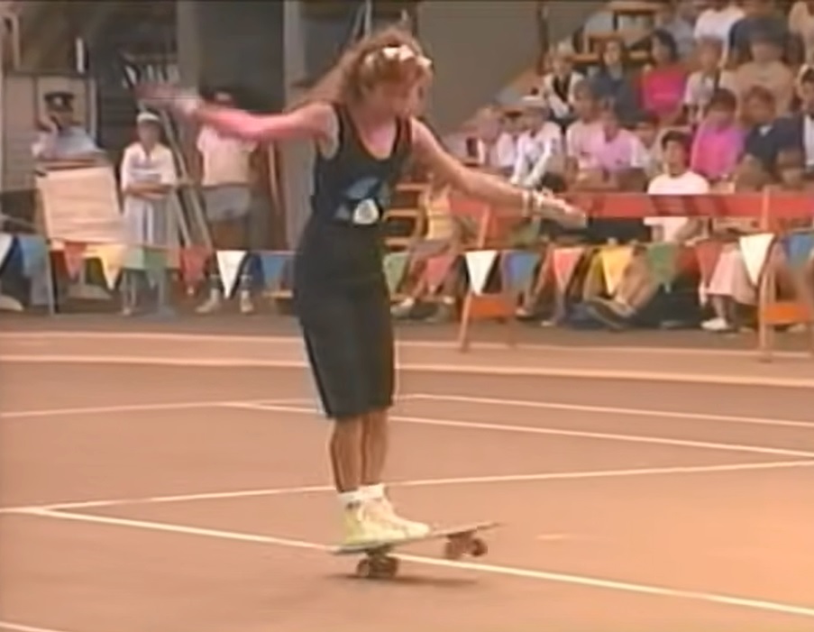 A video called Psycho Skate by Vision Street Wear was released in 1988, and the freestyle segment included Diane performing in tandem with Primo who rode for Vision. You’ve got to love their commitment!