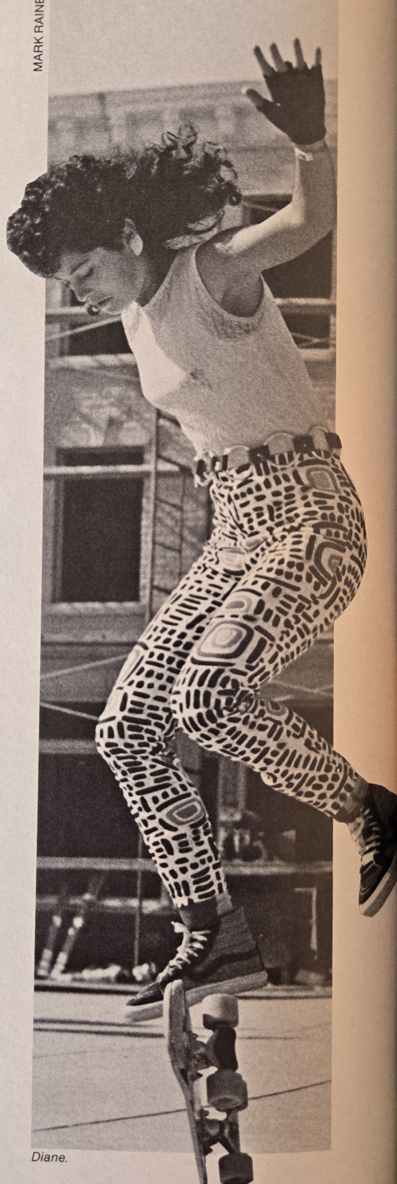 At Expo ’86 in Vancouver for the Transworld Skateboard Championships Diane competed in the professional category against the men, as seen in the film Radical Moves (1986).