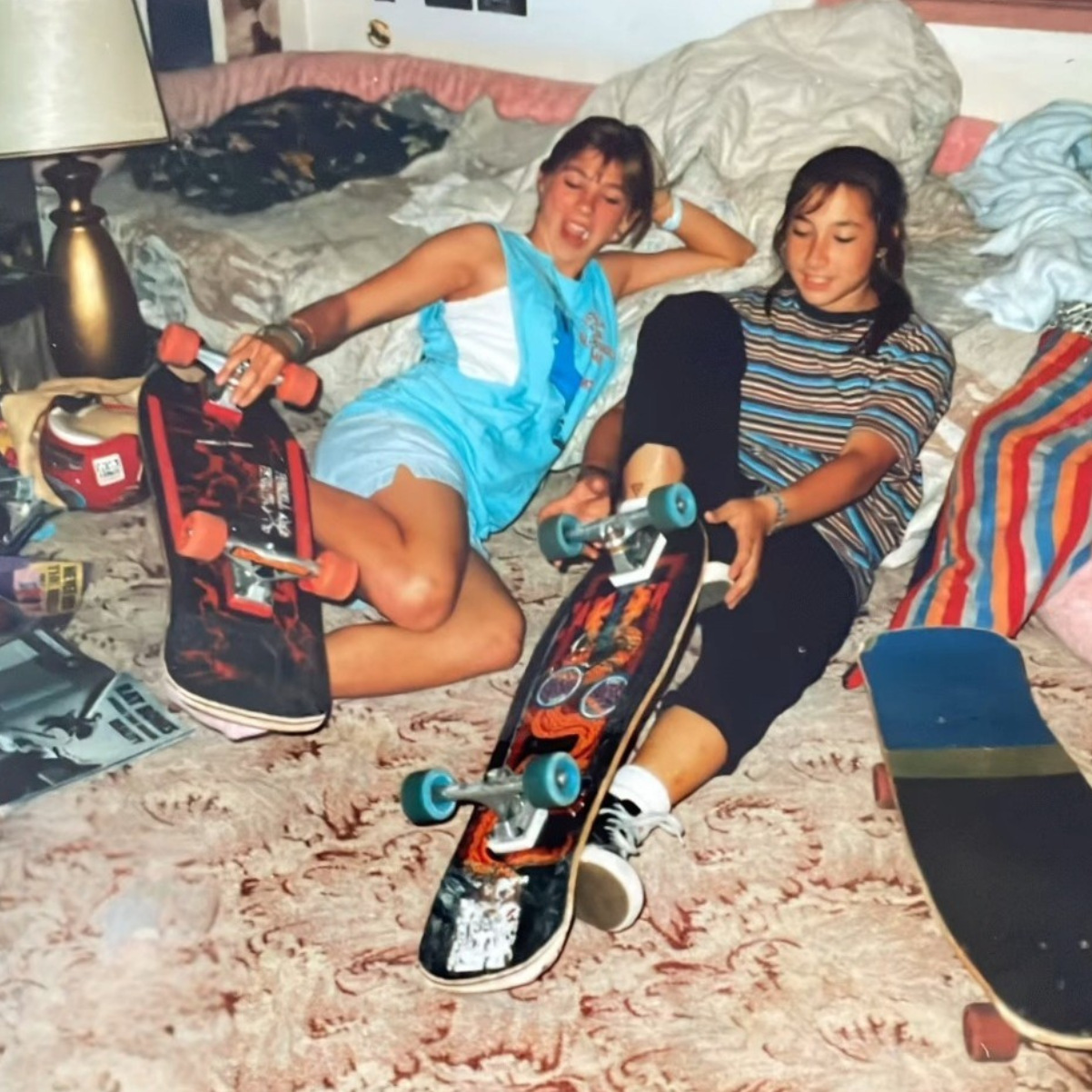 Thankfully, Anita and I lived pretty close to each other, almost in the same neighborhood, so it was pretty easy for her and I to connect, go dork around and work on skate tricks. We really pushed each other. Sometimes we would learn tricks separately, and as soon as we mastered something it was a race to see each other, and show it off. We were always excited about learning new stuff. It was so much fun!