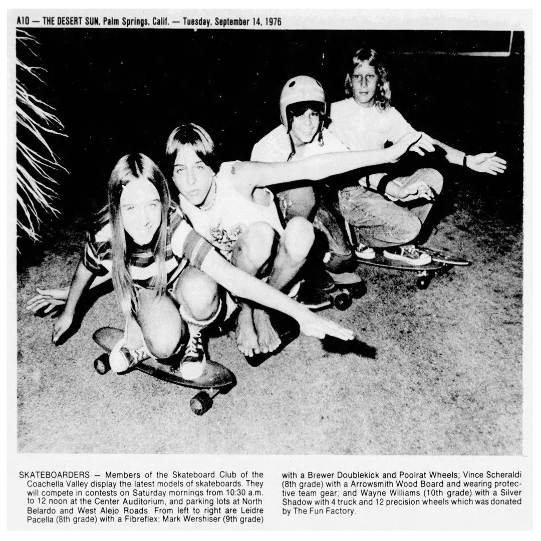 - Leidre Pacella / Coachella Valley Skate Club, The Desert Sun (Sept. 14, 1976)