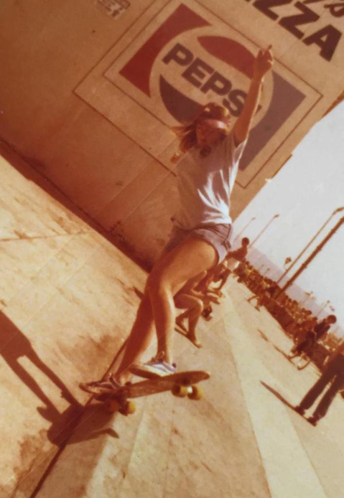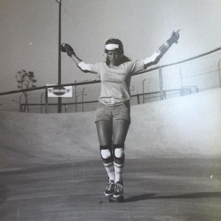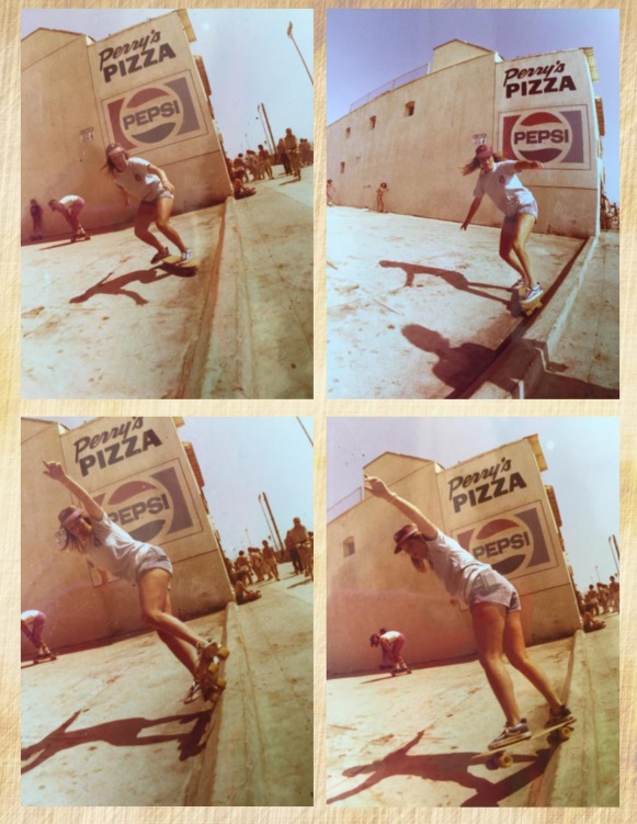 Michelle shared that she was raised in Hermosa Beach, just three blocks from the beach, which meant easy access to surf and being surrounded by surf culture. Michelle took up skateboarding in 1973 with the support of her whole family, and chose it as an activity to pursue when the waves were flat. “My parents always encouraged me and my brother in music and surfing and skating… My mom & dad were busy working, but always let me go to any skate or surf contests, or skate and surf in general. They never discouraged us” (Palmos).