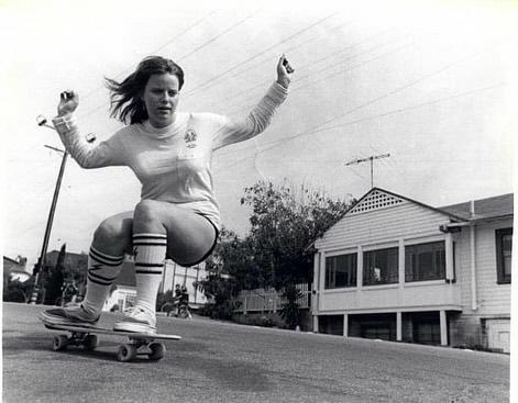 Michelle Kolar-Scott was a freestyle / street skater with the best of them back in the 1970s and was interviewed in 2016 by Lorrie Palmos in a fantastic feature for Girls Who Ride which included photos of Michelle ripping up the curbs and throwing down kickflips!