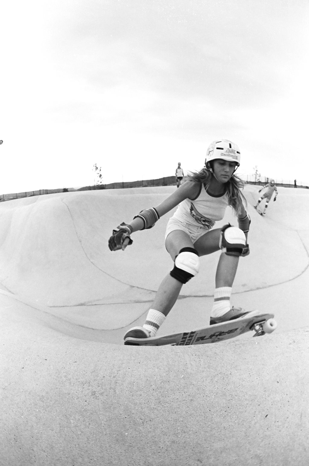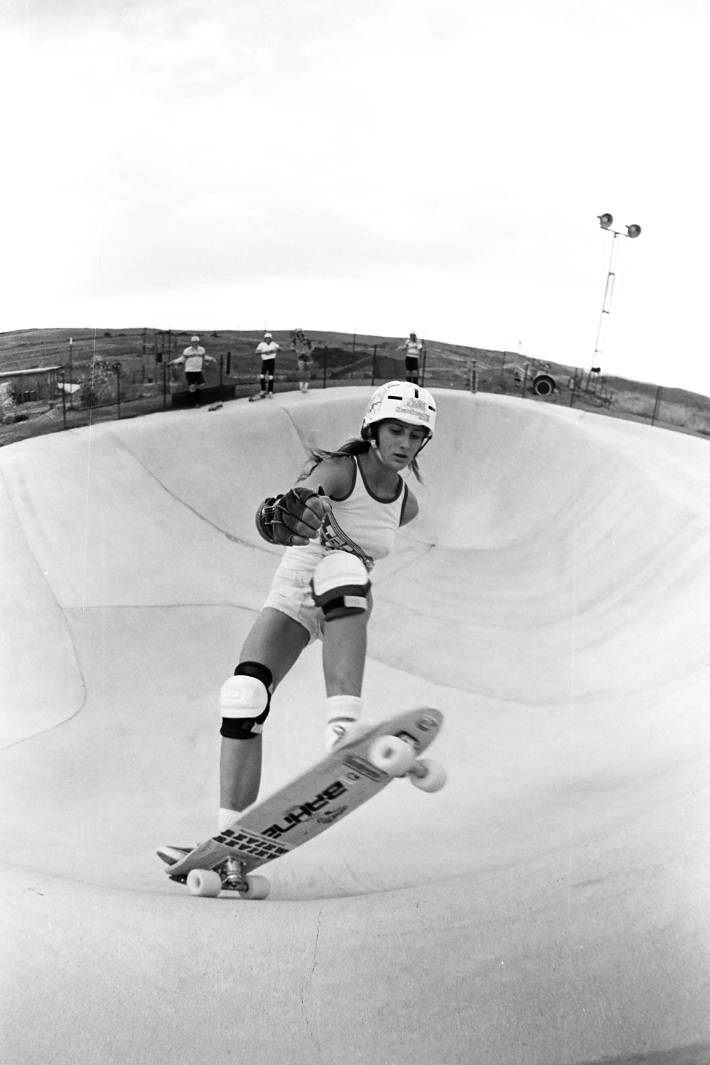Judith recalled that in 1976, a friend gave her a rare 36” laminated wood skateboard deck designed by the east coast surfer, Mike Grassley which she enjoyed in comparison to some of the heavy wooden boards on market. She then purchased a new Tracker set-up with Tracker trucks and Road Rider 2’s, which Judith cruised about barefoot like a surfboard. She would often head over to the Haulover Bridge where skaters would ride under the bridge.